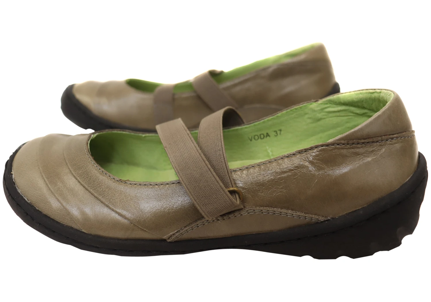 These shoes feature a quality leather upper, leather lining and an elasticized strap over the instep.