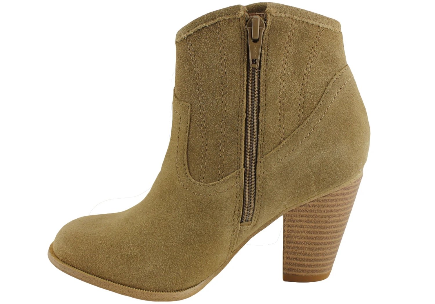 Suede ankle boots with a Cuban heel. The Bonbons Darci ankle boots have a suede-leather exterior and feature a Western-inspired design with a curved topline and tone-on-tone topstitching.