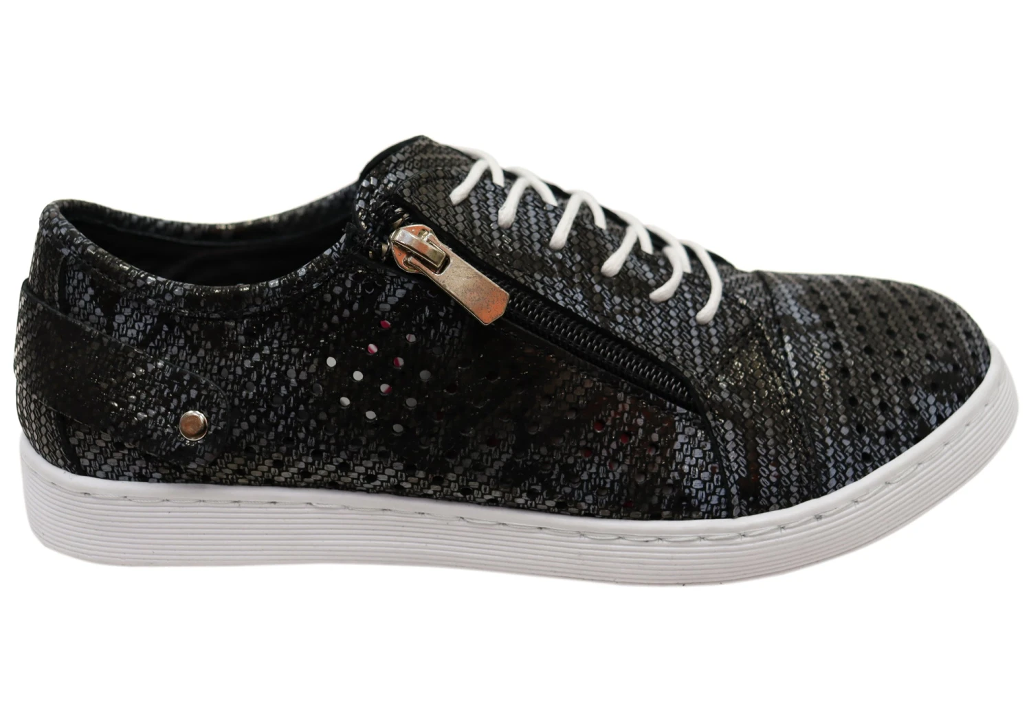 - Modern lace up design with side zip