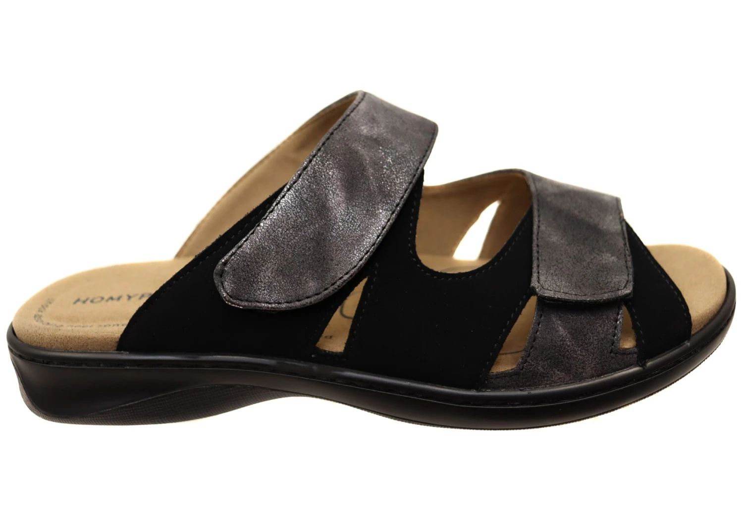 The Homyped Dream Slide is a popular style for those with swollen or wider feet. These sandals feature adjustable straps and cushion pods that offer relief and comfort. Great for arthritis, bunions and heel spurs.