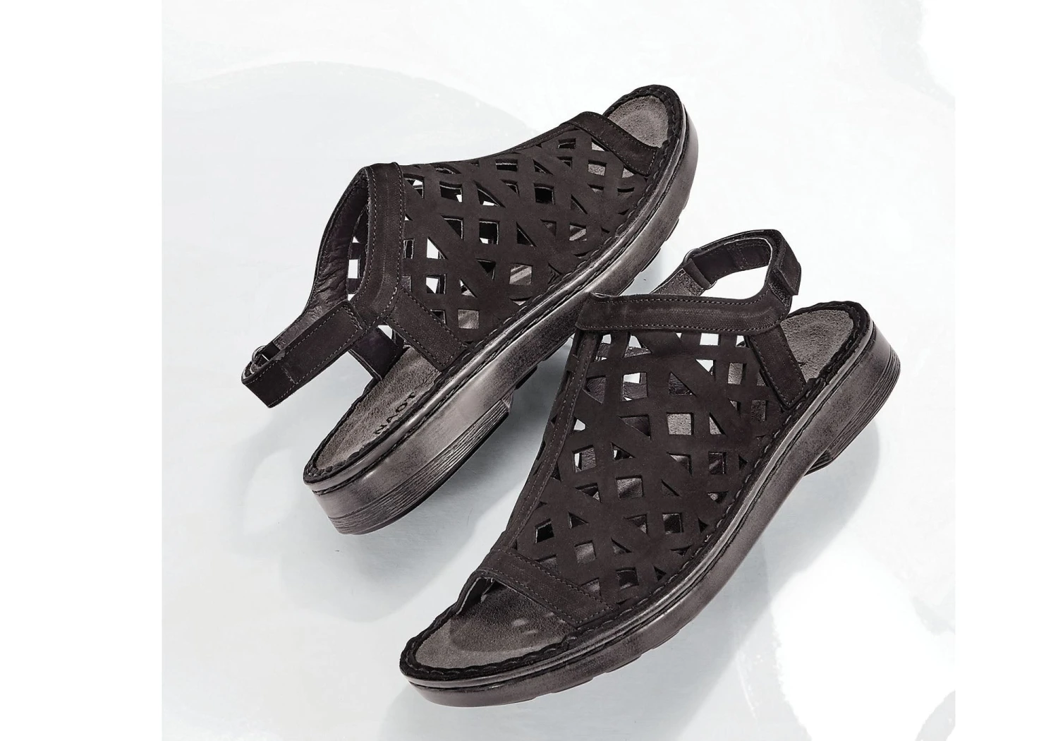 Amadora by Naot is an orthotic-friendly open toe sandal on the Naot Utopia collection. It features a hook and loop back strap with adjustability. This style also features Naot’s removable anatomically-correct cork and latex innersole which is wrapped in soft suede which moulds to the foot with wear. The Naot women’s Utopia collection features a 1.25″ polyurethane sole which is extremely lightweight and durable.