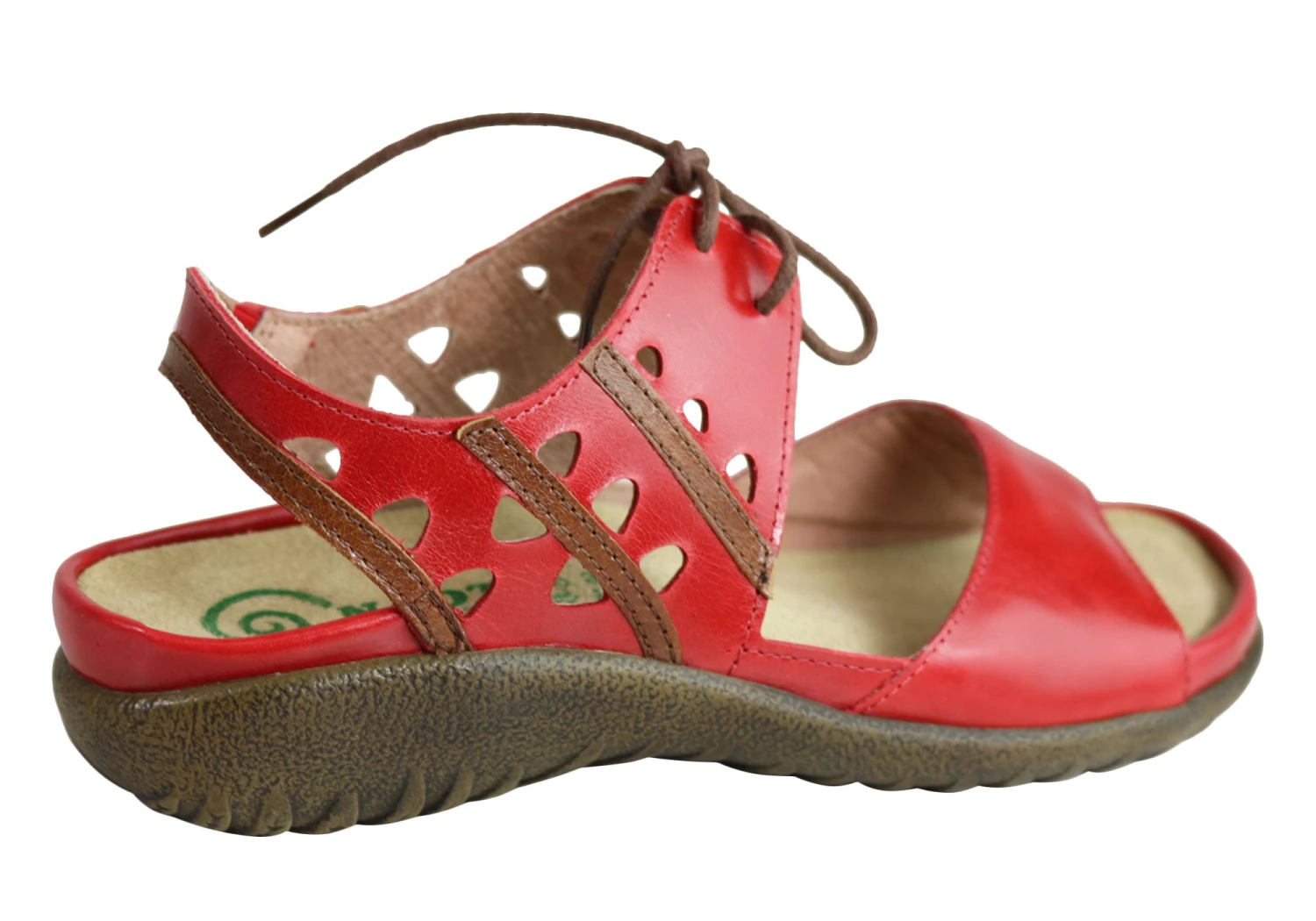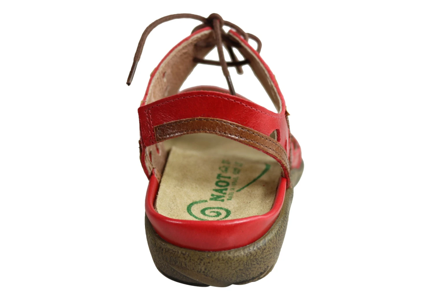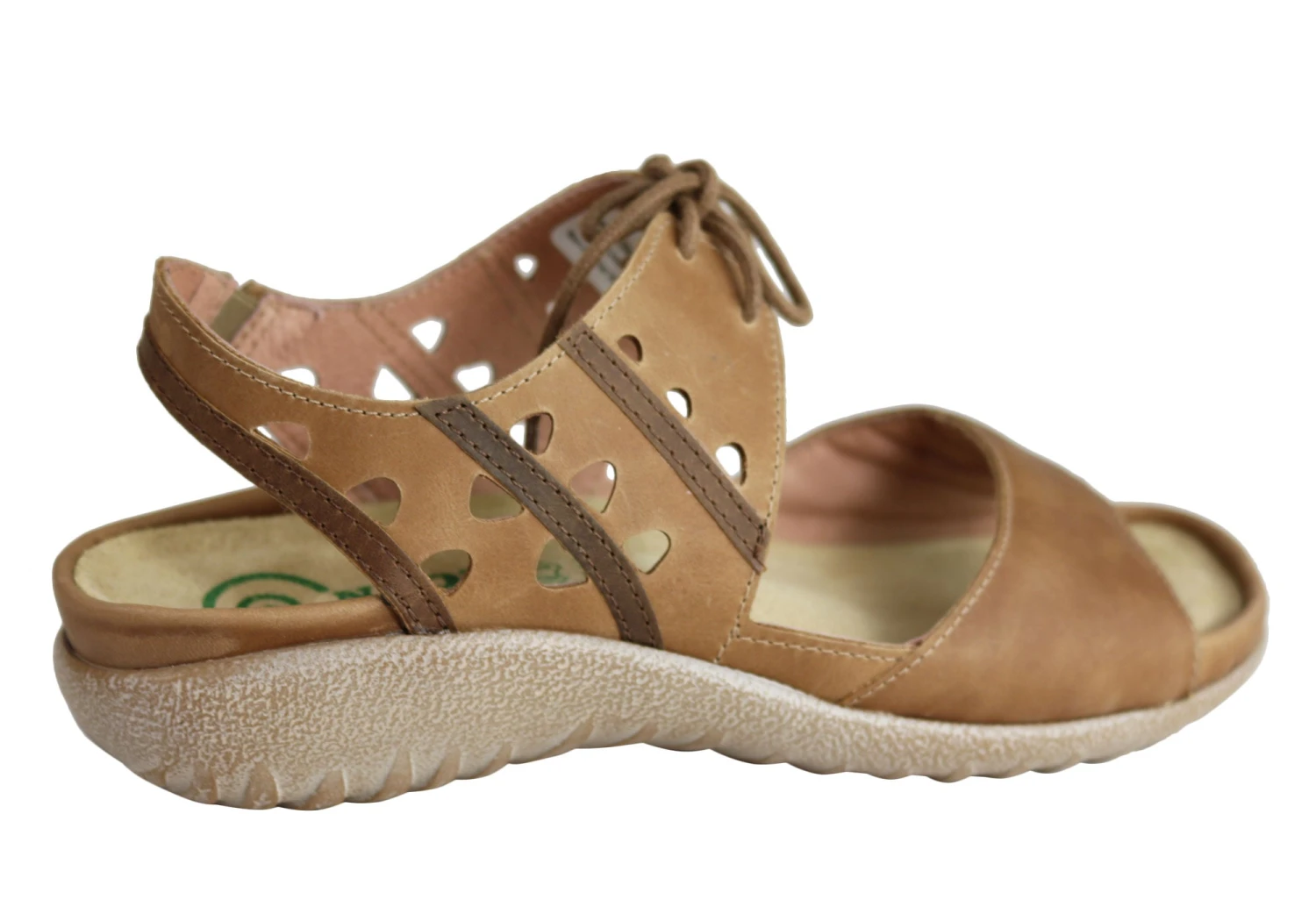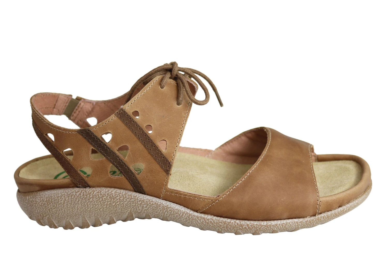 Mangere by Naot is an orthotic friendly laceup sandal on the Naot Koru collection. This style features delicate cutouts & contrasting leathers. It has gore at the backstrap and a padded front strap. Mangere also features Naot’s removable anatomically-correct cork and latex innersole which is wrapped in soft suede which moulds to the foot with wear. The Naot women’s Koru Collection features a 3.54cm polyurethane sole which is lightweight, flexible, and durable.