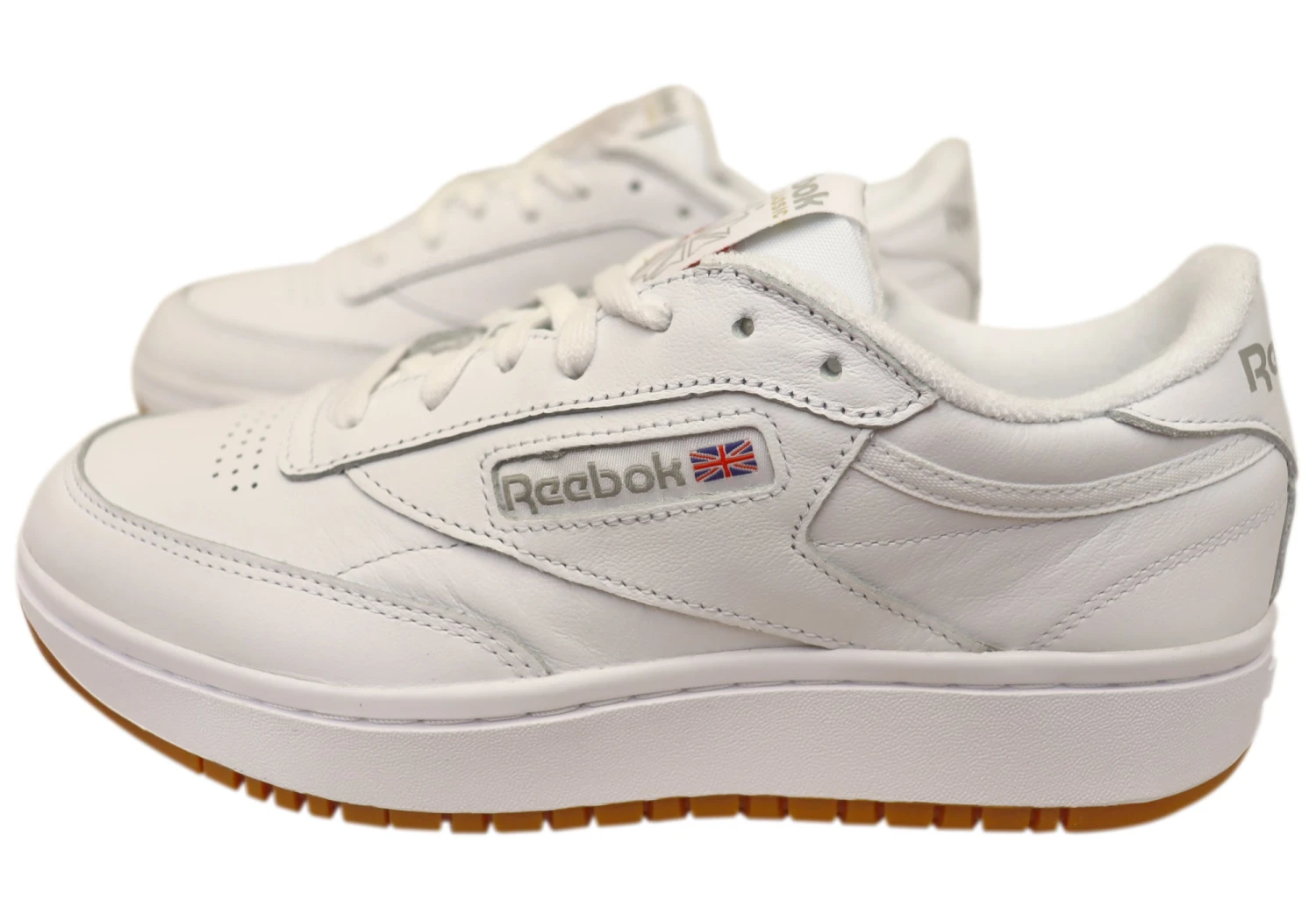 Ultimate comfort and style unite in the Reebok Club C Double sneakers for women. The stacked midsole provides extra height while the chunky profile adds a touch of eye-catching appeal. Made with a supple leather upper, these sneakers offer a sleek and minimalistic look, perfect for any fashion-forward individual.
