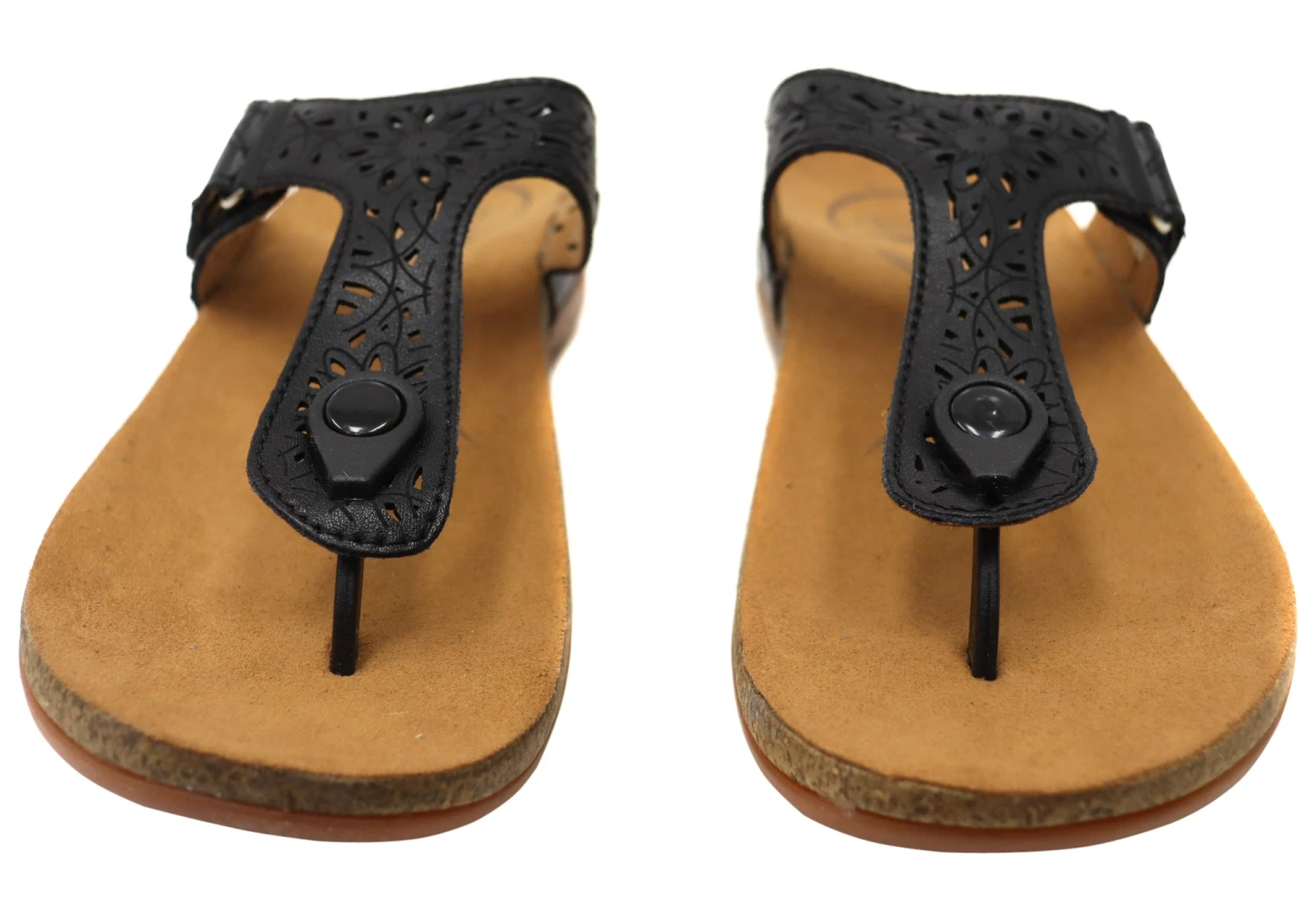 - Adjustable PU T-Bar thong with laser punching detail